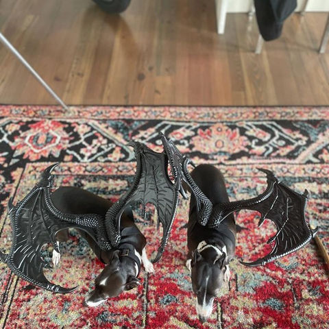 Oh, you think your dog in a sweater is adorable? Bless your heart. Meanwhile, Alon's Miniature Greyhounds, are out saving the world dressed as Batman and Robin. Meet Marshall and Peavey. That’s right, while your pooch is busy chasing its tail, Alon's dynamic duo is off being the centerpieces of a Mardi Gras extravaganza, visiting sick kids in hospitals, making appearances at events, and spreading joy and cuteness everywhere they go.